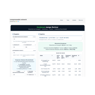 - Kondensat (Wasseranfall und Abscheidung bewerten)