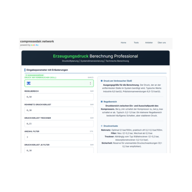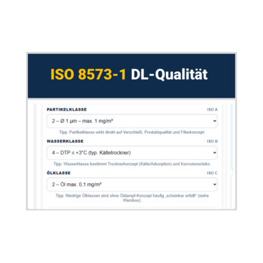 Tool zur Ermittlung der Qualitätsklasse nach ISO 8573-1